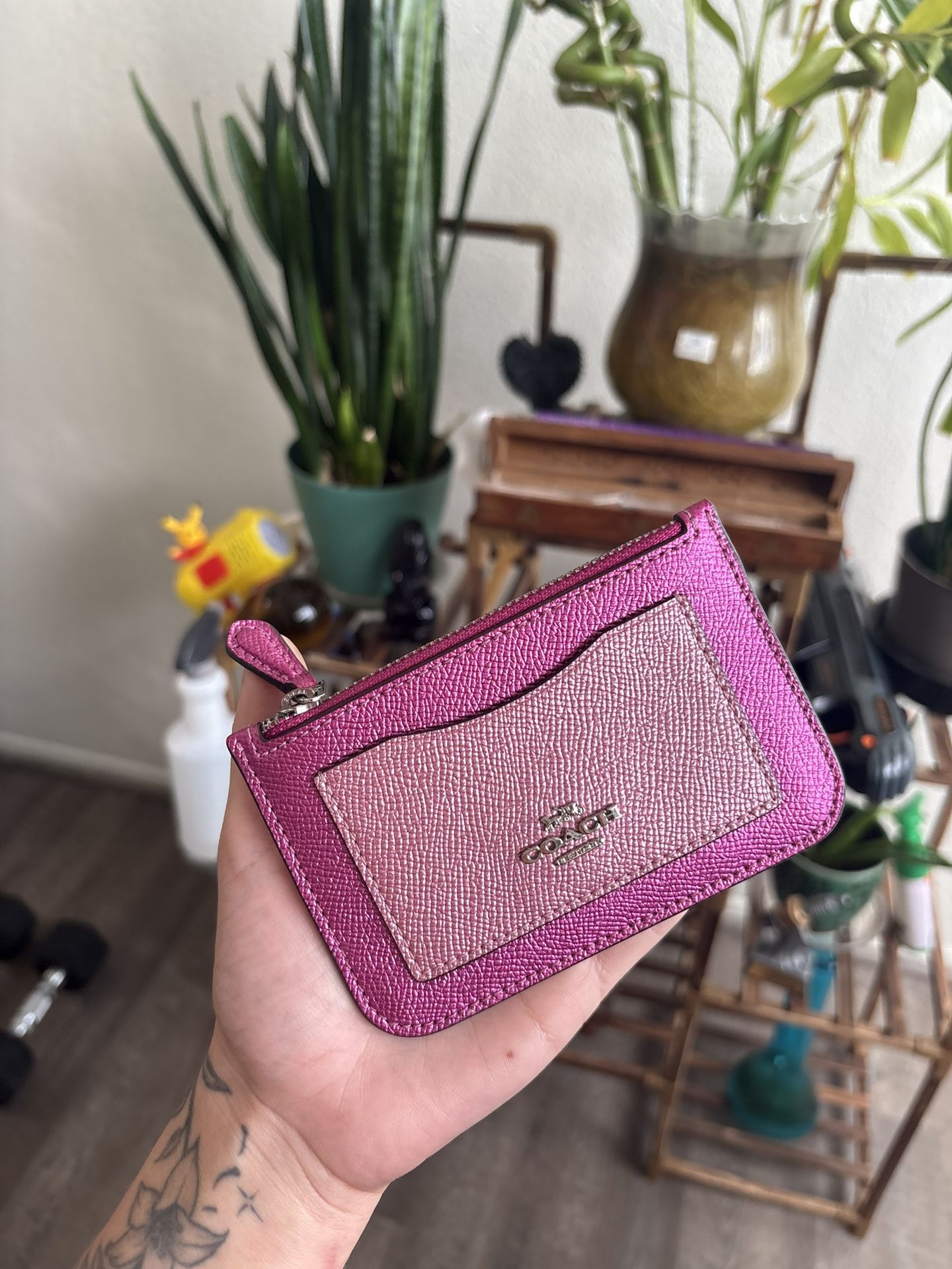 New just don’t have the box or tag any longer :( never used and wish I could keep it for myself, haha! Hoping this gorgeous pink wallet finds a good home. 🩷🩷🩷 • No flaws, just say on a shelf until I brought it to my marketplace. Originally spent $90. Still has the original little coach tag inside! • Offering both pick up AND delivery!!!!