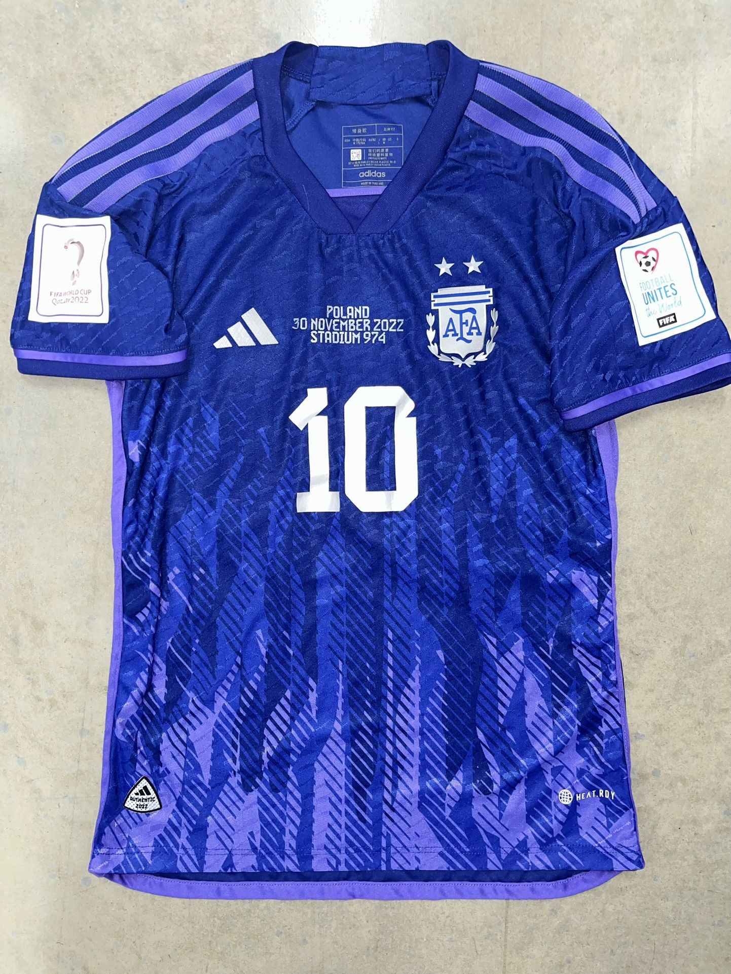 Argentina 2022 World Cup #10 MESSI Adidas Away Purple vs POLAND Soccer Jersey M