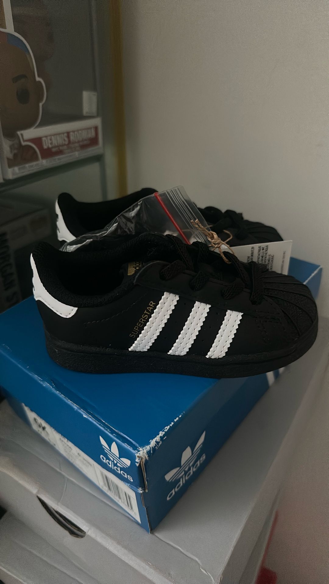 Adidas Superstar Black/ White Baby Kids Sz 6 NEW
