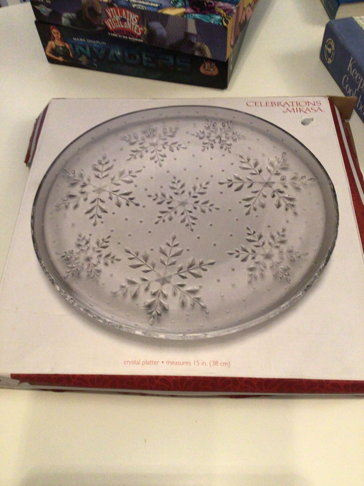 Celebrations by Mikasa 6.00 like new, Large 15” platter heavy glass, pick up in Malta.