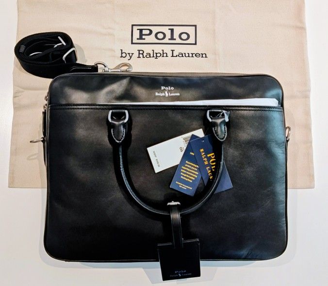 Polo Ralph Lauren Leather Briefcase (Strap, Laptop Sleeve, Storage Bag). NWT.