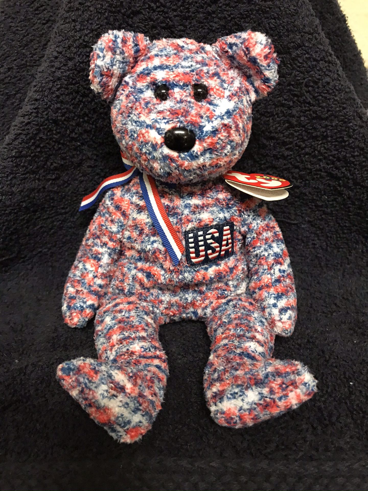 This item was just part of a collection and never played with. It’s in excellent condition. The bear is called the “USA” bear and the date of birth is July 4th 2000. $10.00 OBO