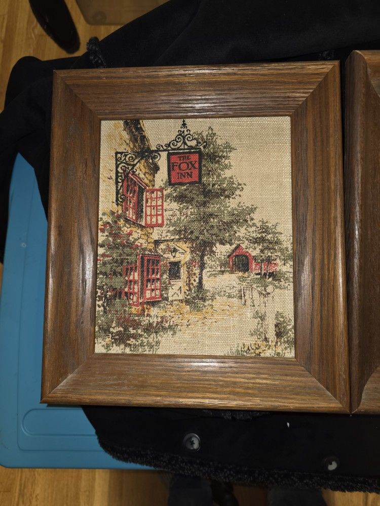 STONELEA MILLS is known for kitchen textiles in the 60 /70s. These pictures are beautifully printed on canvas and framed by the company. Size is 12.5 x 10. Great shape for their age. Sold as a set of 2.