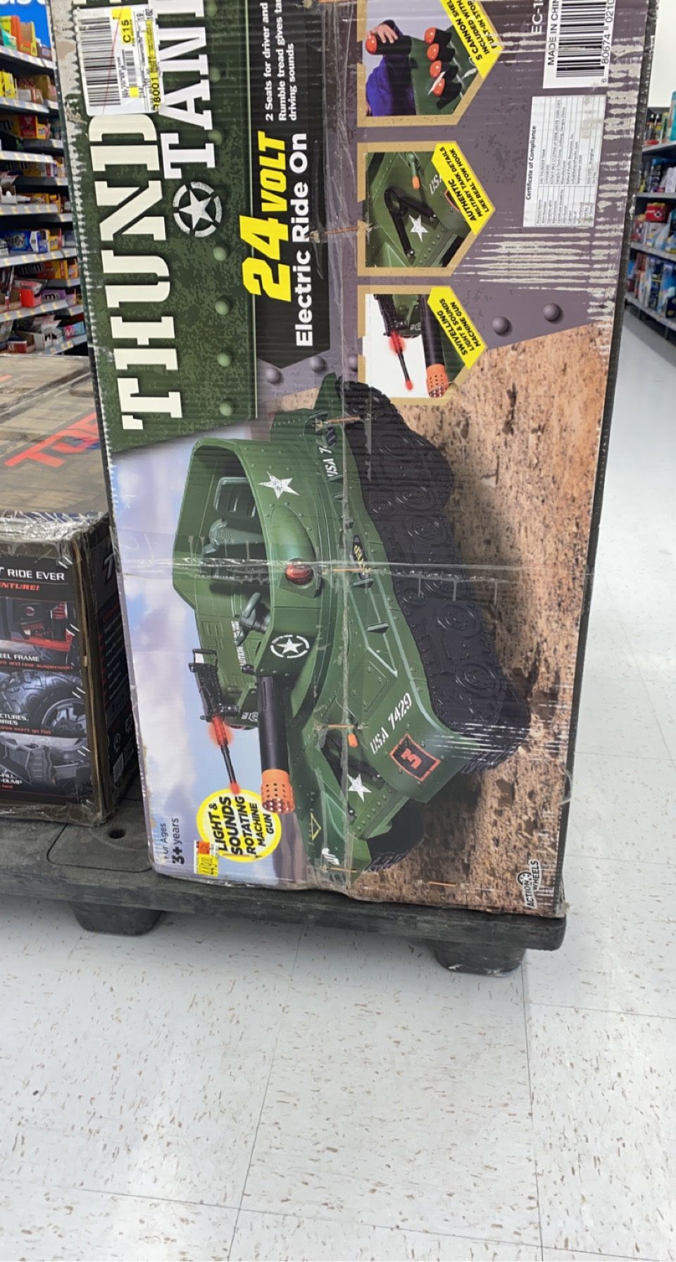 Light and sounds rotating machine gun. Easy 1-2-3 assembly( 24 volts) brand new