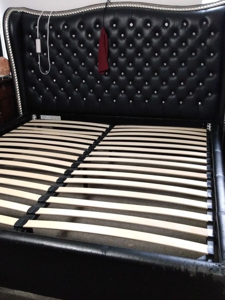 King size frame, mattress not included. Cats tore it up was 2k when I bought it. Very sturdy aside from it's looks it's an excellent frame that will last a very long time. Pick up only, located in northeast Houston.