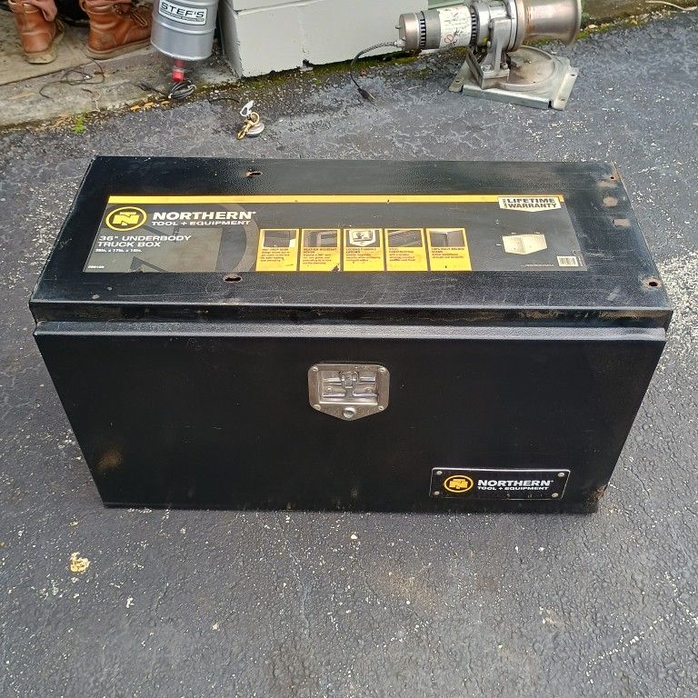 Northern Tools Tool Utility Box for a Truck can go Under or Above or in the Truck Bed Has a Swing Down Door With a Lock