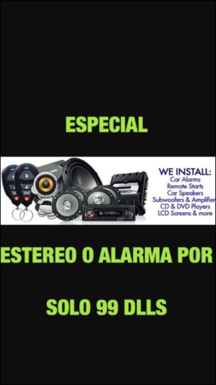 Car stereo or alarm for 99 dlls Free installation .. 3038 w van buren .. from 9 am to 6 pm ..