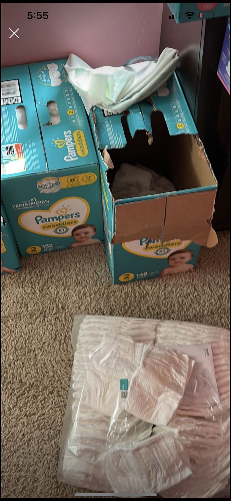 Size 2 . One box unopened , other box is half full with a half pack and maybe 20-30 loose size 2 diapers