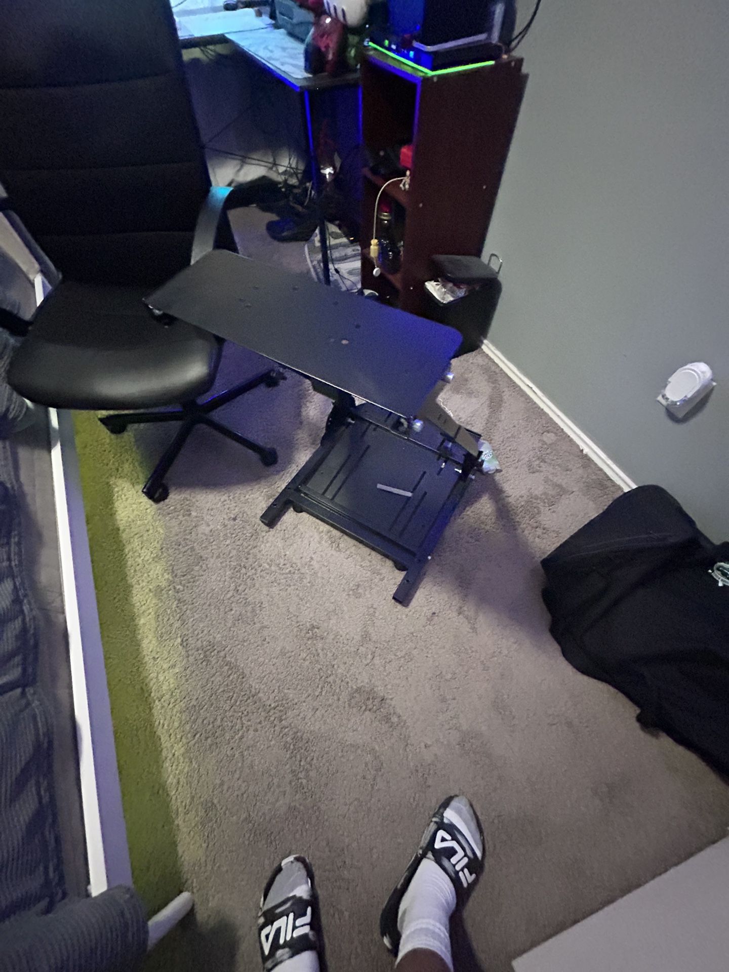 Selling my adjustable and foldable racing sim stand in great condition. Perfect for anyone who wants a sturdy setup for their racing wheel and pedals. Compatible with most Logitech and Thrustmaster racing wheels. Features: • Adjustable height and angle for comfort • Foldable design for easy storage and portability • Durable and sturdy for stable racing sessions • Compatible with Logitech G25, G27, G29, G920, and Thrustmaster racing wheels Condition: Gently used and in great shape. Price: $40 or best offer — priced to sell quickly!