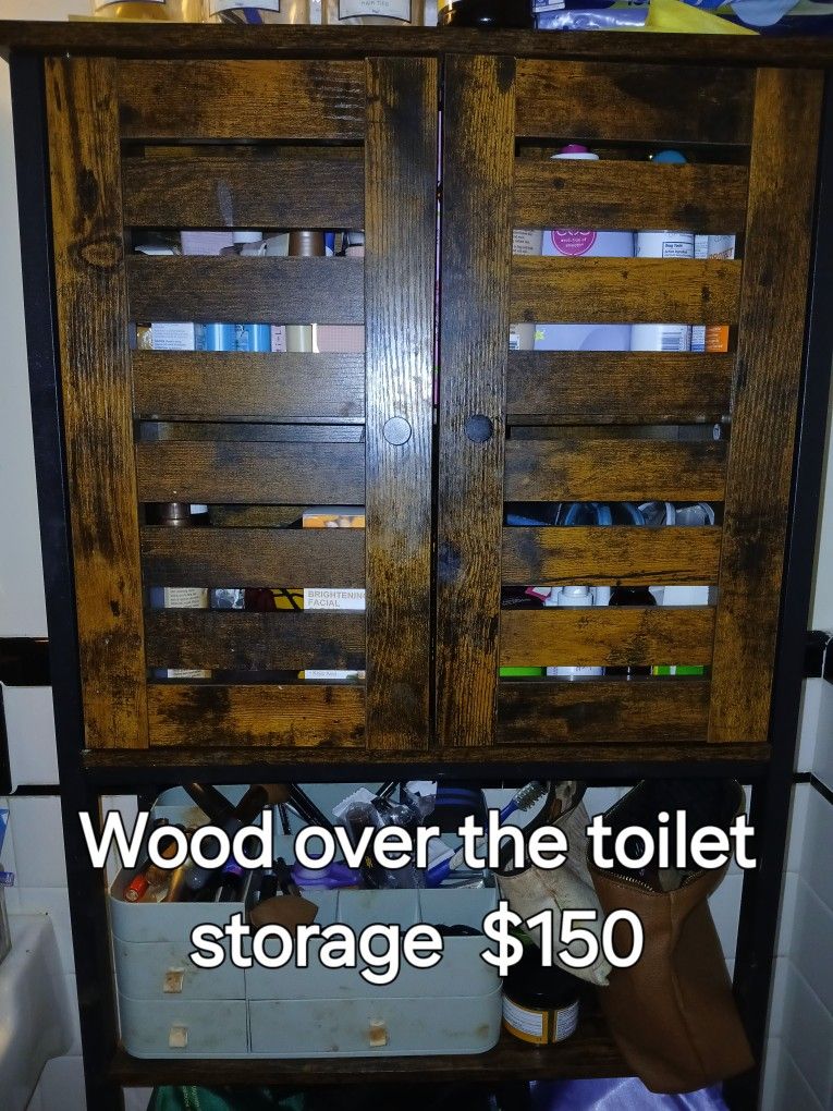 Wood over the toilet top storage