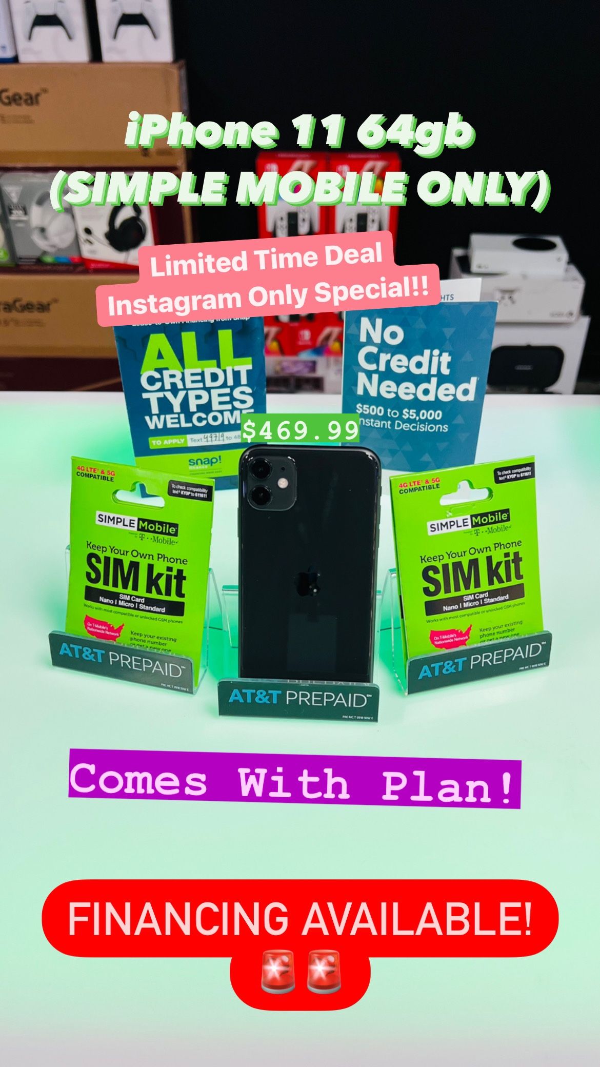 iPhone 11 64gb Black (SIMPLE MOBILE ONLY) -Comes With Plan- **MINT CONDITION**