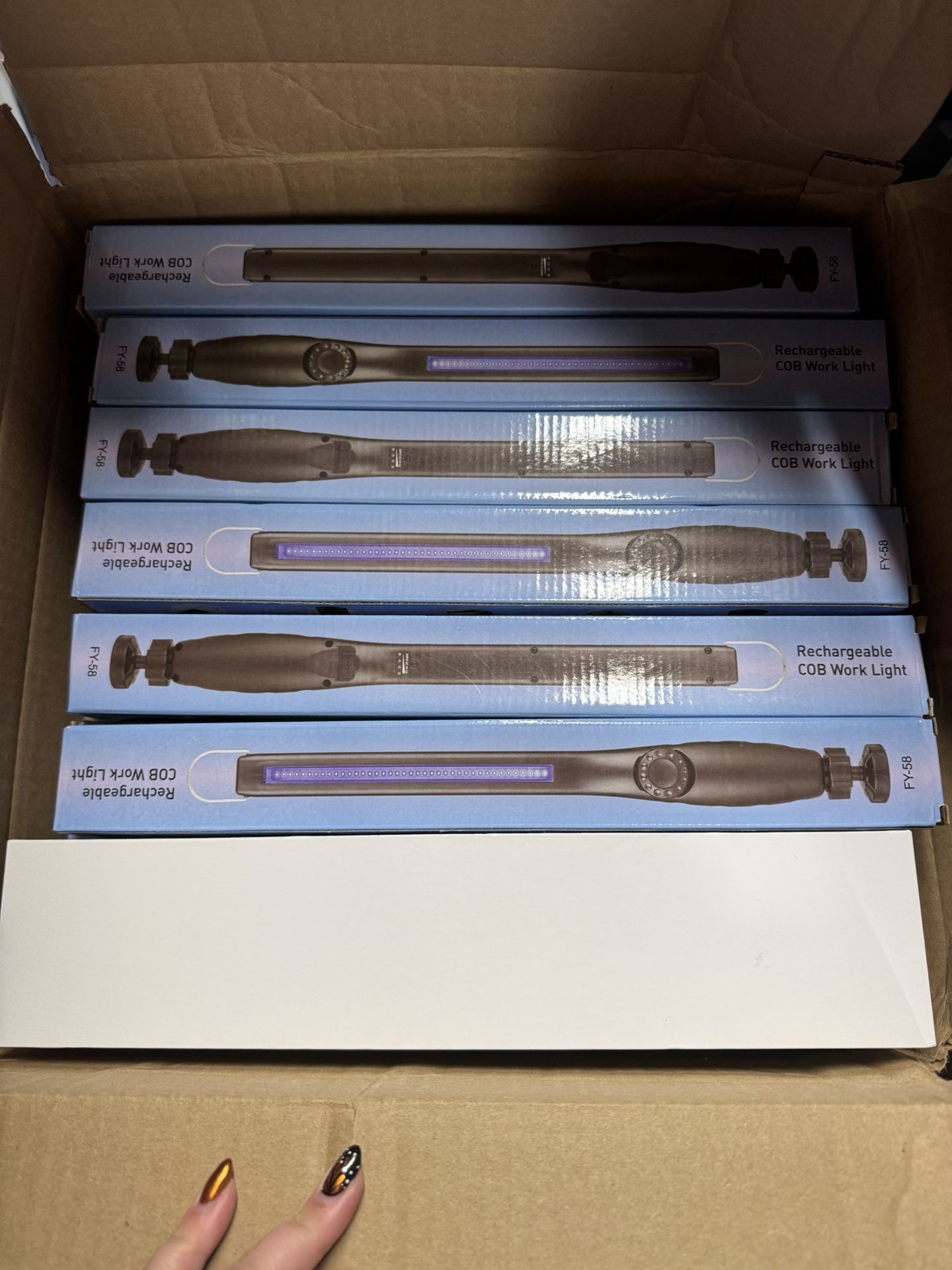 Brand new rechargeable COB LED work lights, never used and still in original packaging. Super bright and perfect for garage work, car repairs, camping, emergency kits, or DIY projects. Features: • Bright COB LED strip light • Rechargeable (no batteries needed) • Built-in adjustable stand/handle • Compact and lightweight ✨ 6 available 💰 Bundle discounts available 📦 Pickup preferred Message me if you want more than one!