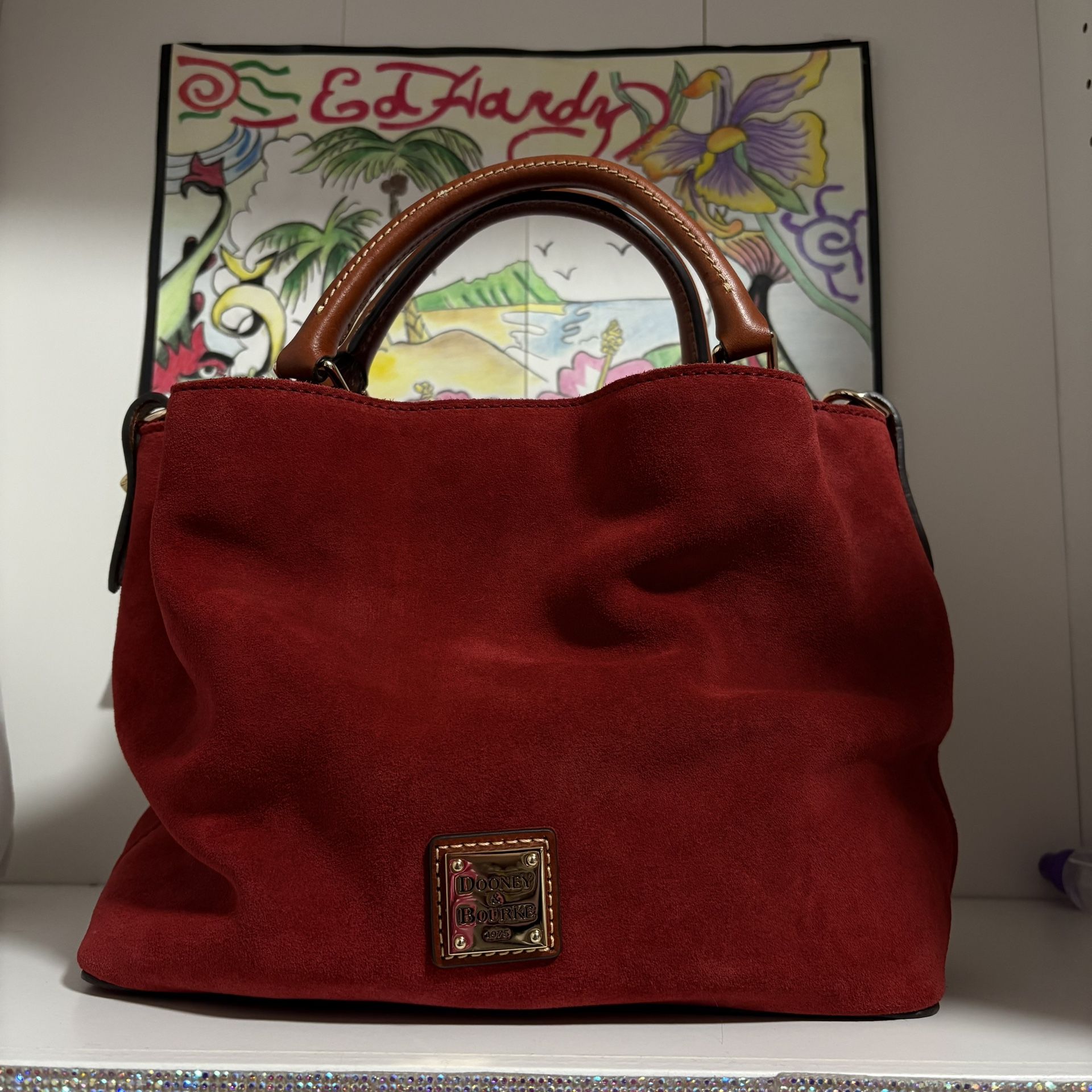 Vintage Dooney And Burke Bag Red Suede And Leather