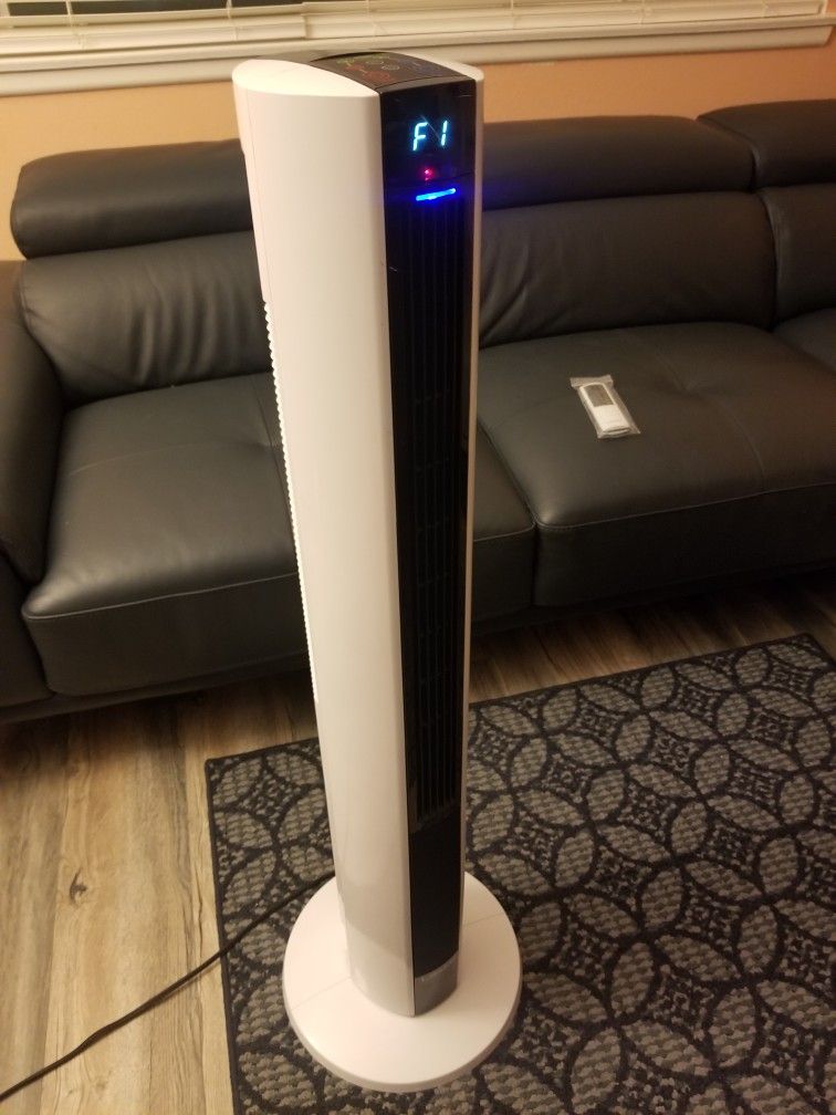 Works perfectly, but has some small scuffs. Useful year round with both a fan and a heater. Has remote.