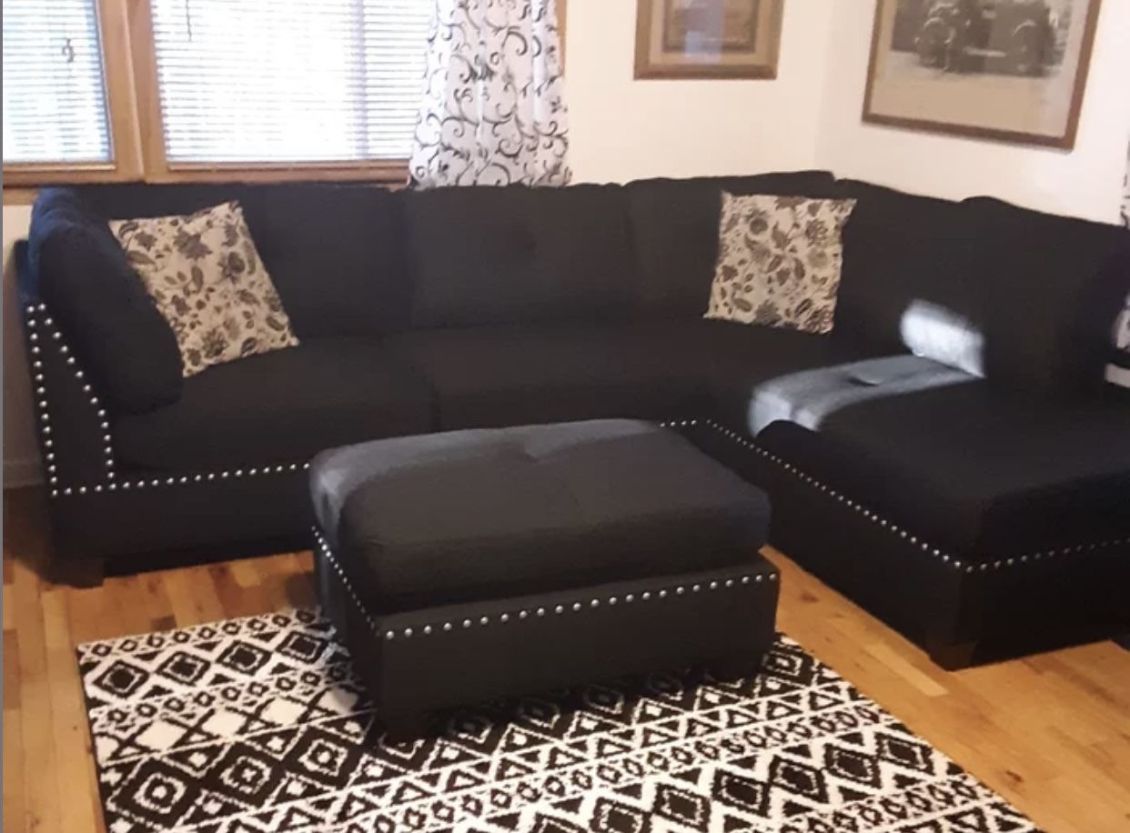 New Black Sectional Sofa Couch Ottoman