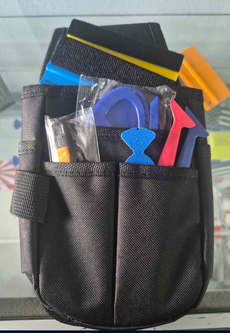 2 squeeges 1 blade 1 tucker 1axe tool 1 wrap cutter 1 buffer 1 pair of wrap gloves 1 knifeless tape 3 magnets