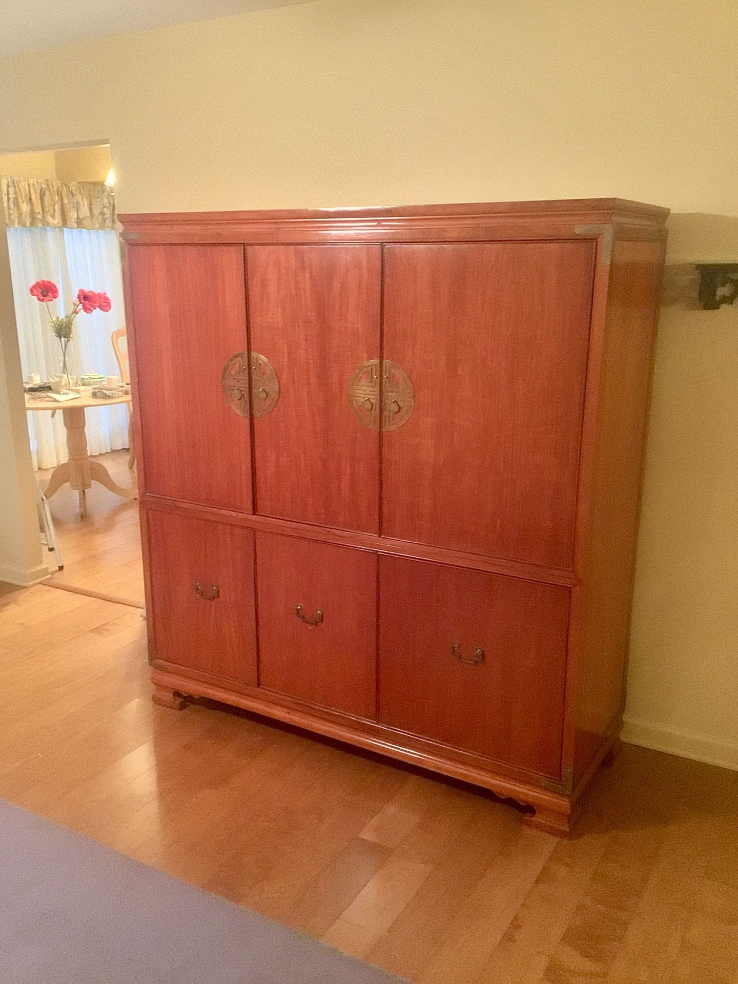 Asian style entertainment center for sale. This is a nice entertainment center in good condition. Will deliver.
