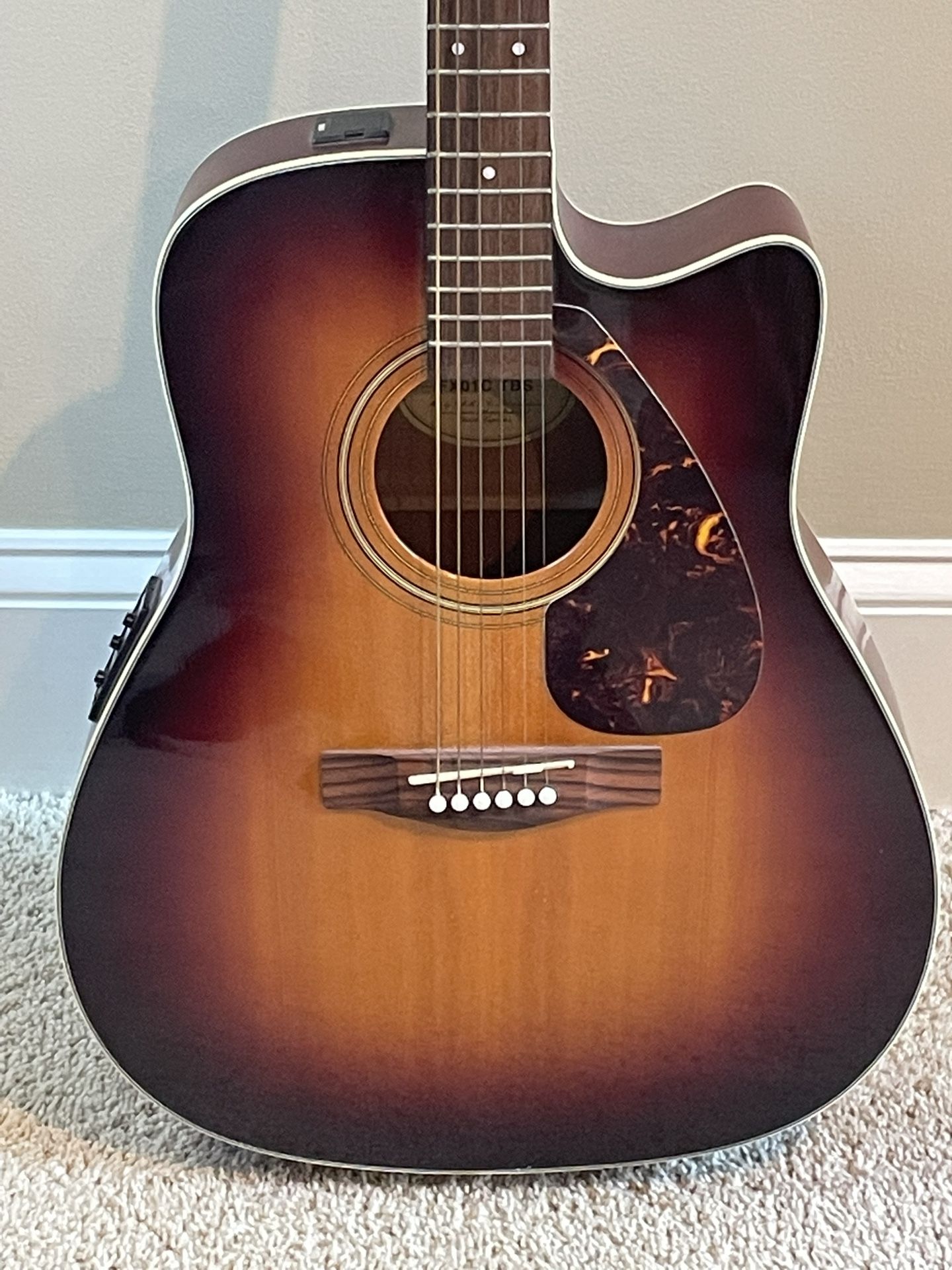 Yamaha FXO1C- TBS Acoustic Electric Guitar. Ideal for beginner or as a travel guitar. Dreadnought shape with a spruce top, Mahogany back and sides, Rosewood fingerboard and bridge. Works and sounds great! No major eyesores. It has some dings at the bottom and one on the top of headstock as pictured but overall is decent looking. Priced accordingly. Price is firm, but open to trade for acoustic or electric guitar or barbell weight plates. Ready for Pickup in Alpharetta/Johns Creek, 30022.