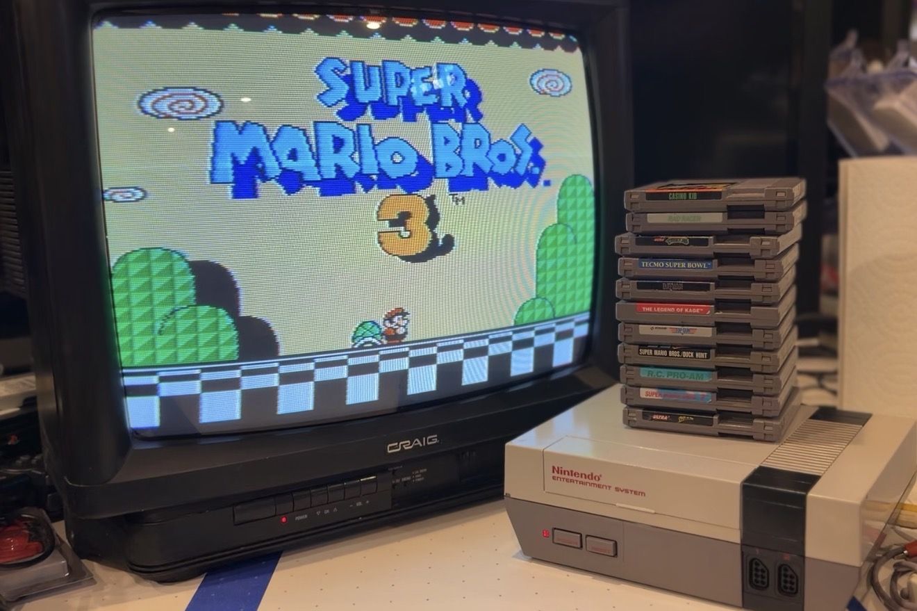 Relive your 1980’s/1990’s glory days with this old school gaming bundle. CRT is a Craig PC1943 model 19” television. Missing cover on front and no remote control but tested with game as shown in pics/video. Nintendo console comes with two controllers, original light gun + 11 games. And power cord and AV cable. Super Mario 3 Rad Racer Casino Kid (not included and accidentally shown) Teenage Mutant Ninja Turtles Tecmo Super Bowl Batman The Legend of Kage Top Gun Super Mario Bros/Duck Hunt RC Pro-Am Super Mario Bros 2 Skate or Die Every game has been taken apart, verified authentic, cleaned and tested. This is plug and play ready. No shipping or delivery but might consider trade for something really good older Nintendo related.