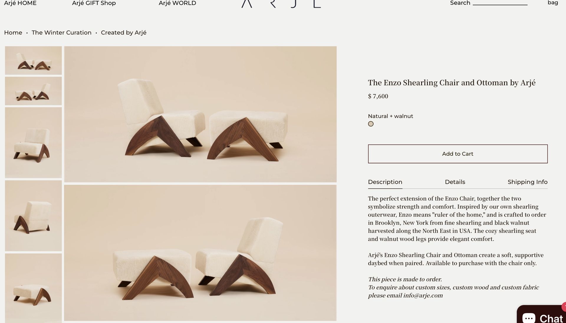The Enzo shearling chair And Ottoman By Arje