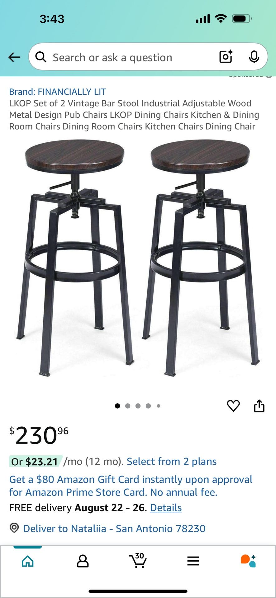 Modern design, adjustable height. Perfect for a kitchen or bar counter. Condition — brand new, still in packaging. We bought 4 chairs, but only use two. The other two are still in the packaging. Price: $80