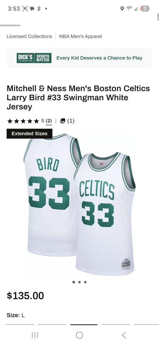 Larry Bird Boston Celtics Jersey Sizes S Thru 2X