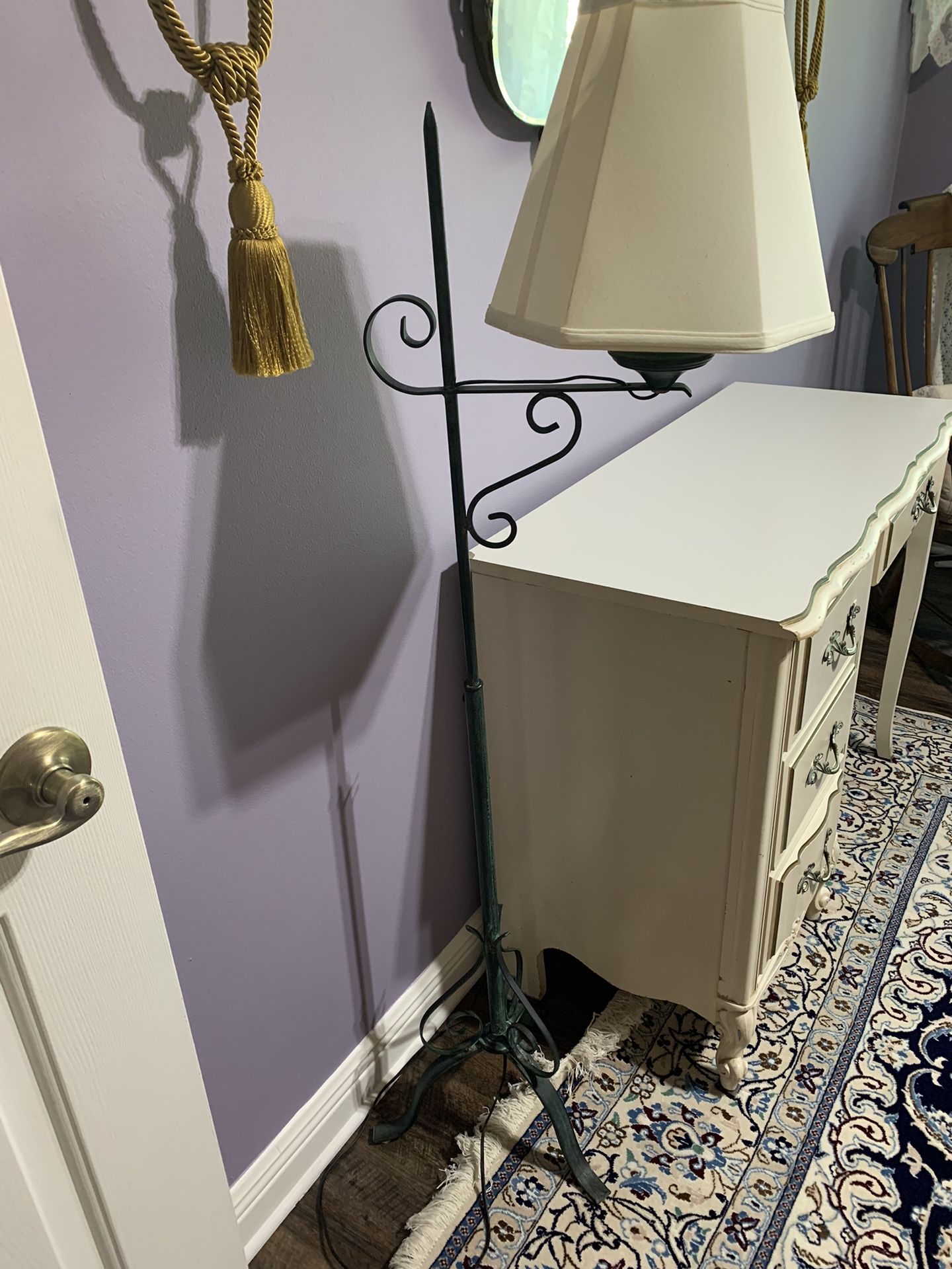 A very cute vintage floor lamp with adjustable height and a beautiful finial. Beautiful French country style.