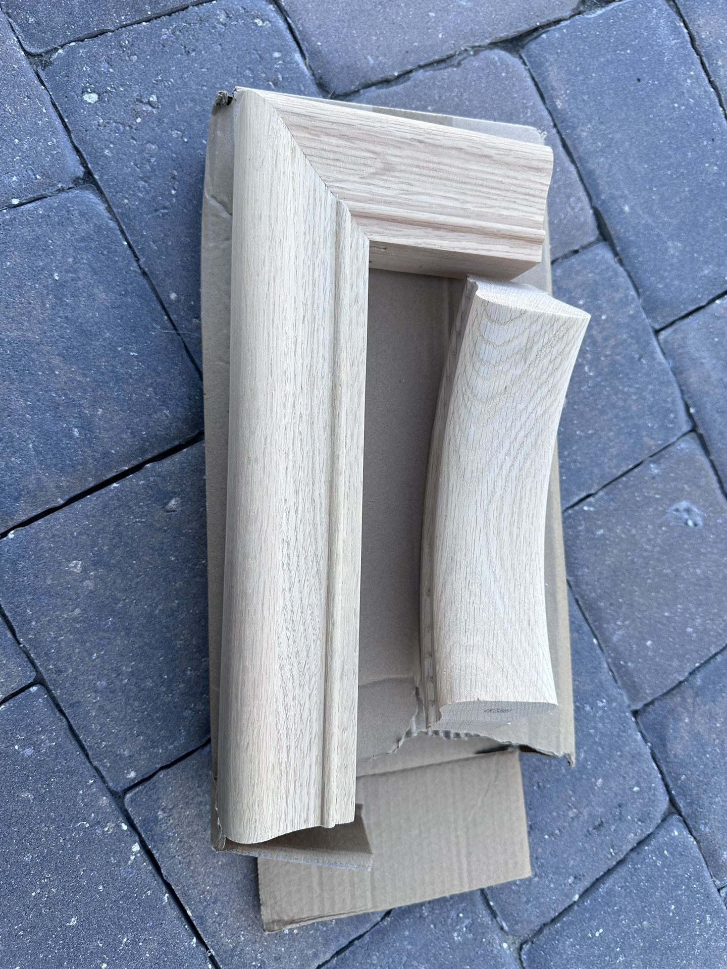 36 feet red oak hand rail 8 pieces of young’s 11 1/2 x 48 return oak treads 2 oak posts and other stair parts