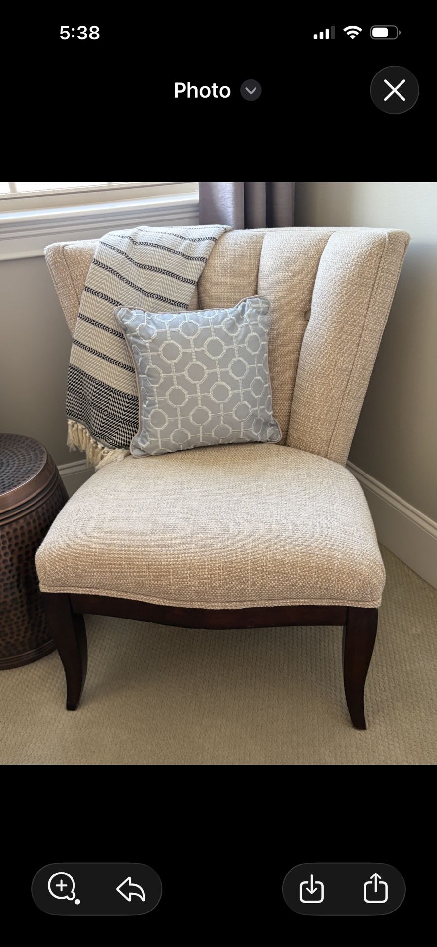 Bedroom Cream Upholstered Chair With Cherry Legs