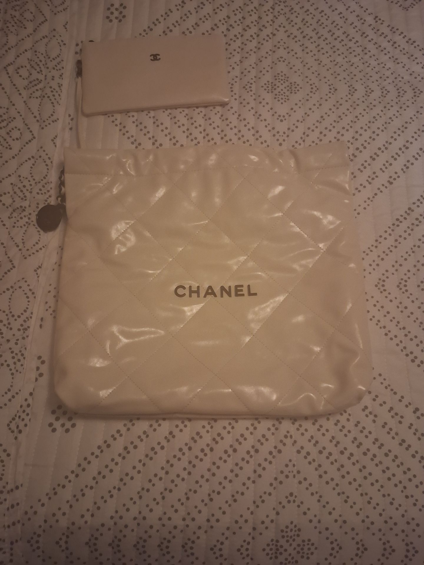 Used but mint condition Chanel 22 hobo shoulder bag white with black hardware. 15"×14×4 10" drop.