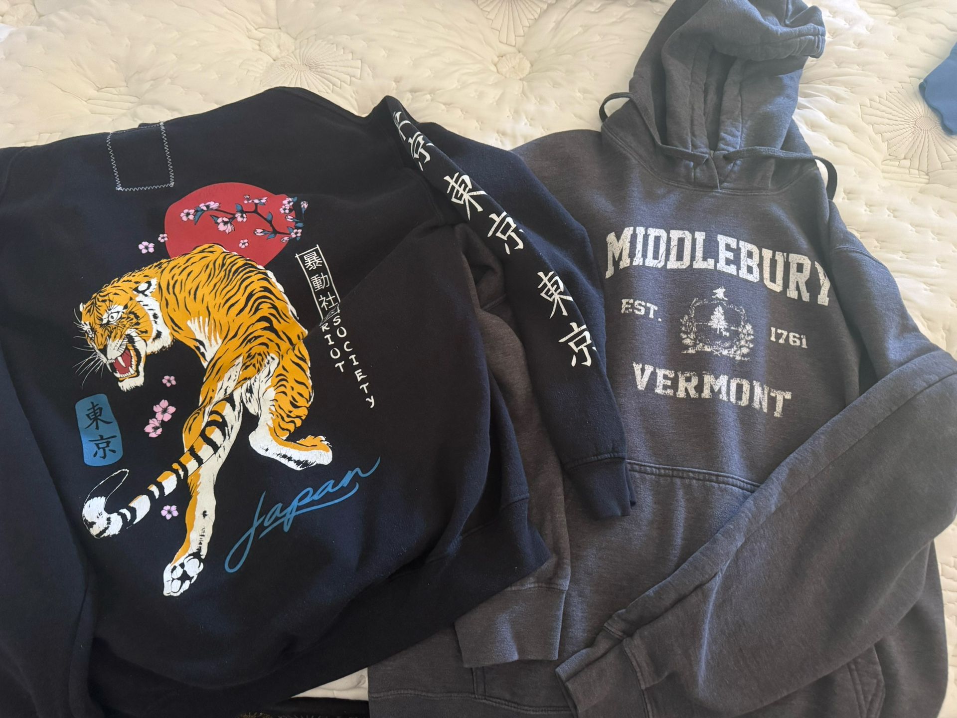 One Middlebury College hoodie and one Riot Society hoodie. Both size medium. Gently worn. Asking $5 for each. Buy one or both!