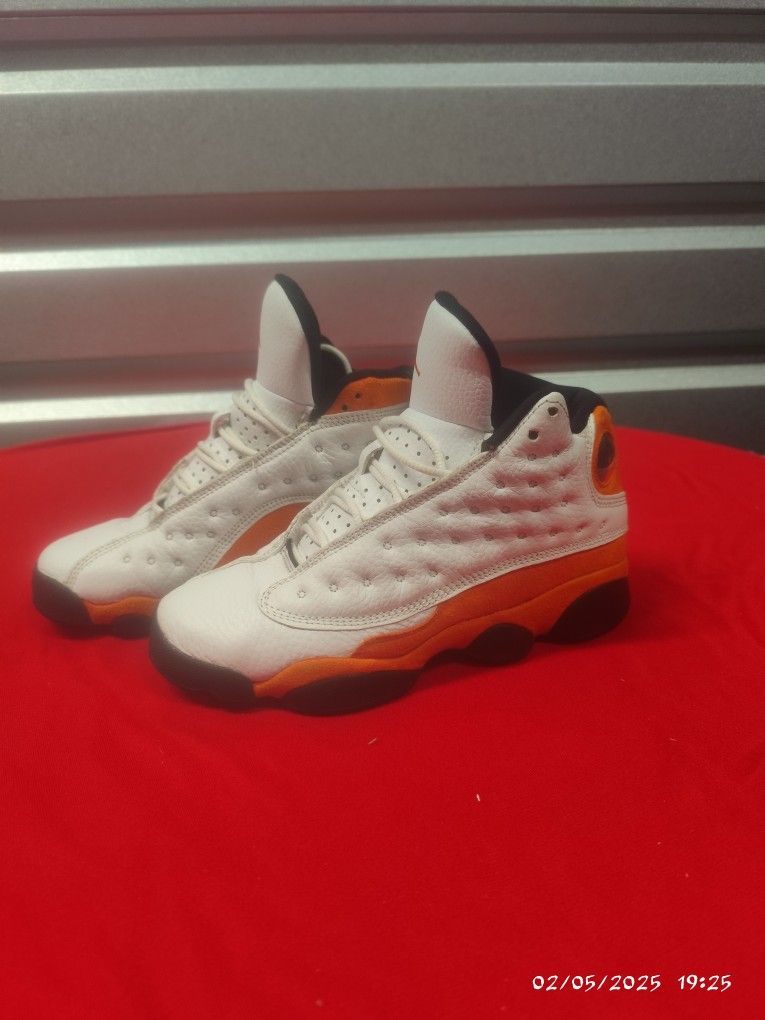 Women's size 6, Air Jordan Retro 13 Starfish, white/orange suede, in excellent condition.