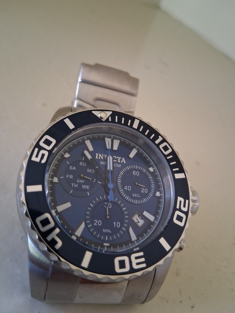 (Hablo español)... Authentic, slightly used. Worn 2 times. beautiful Invicta big Stainless Steel watch. This is a very elegant timepiece that will catch anybodies eyes. It is very confortable and looks amazing. Perfect for any occasion. This would also be great as a gift for yourself 🎁. Feel free to make me an offer. Please check out my other awesome items I have on sell in my profile!. Thank-you an have a great day. 😊 🙏
