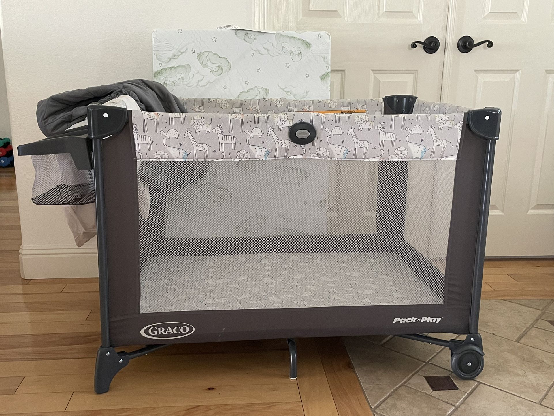 In great condition, Graco Pack N Play. My kiddos barely used it. It comes with a Dream on Me mattress pad. I think I paid a little over $40 just for the mattress pad. It also comes with 3 covers. Porch pick up in Galt by Marengo Rd and Walnut Ave. I lost the bag where the pack n play is stored but everything you need is there. See photo