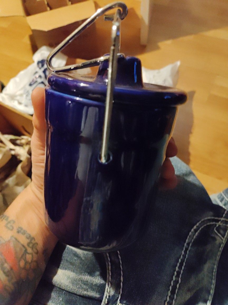 Vintage Blue Pottery Cheese Crock