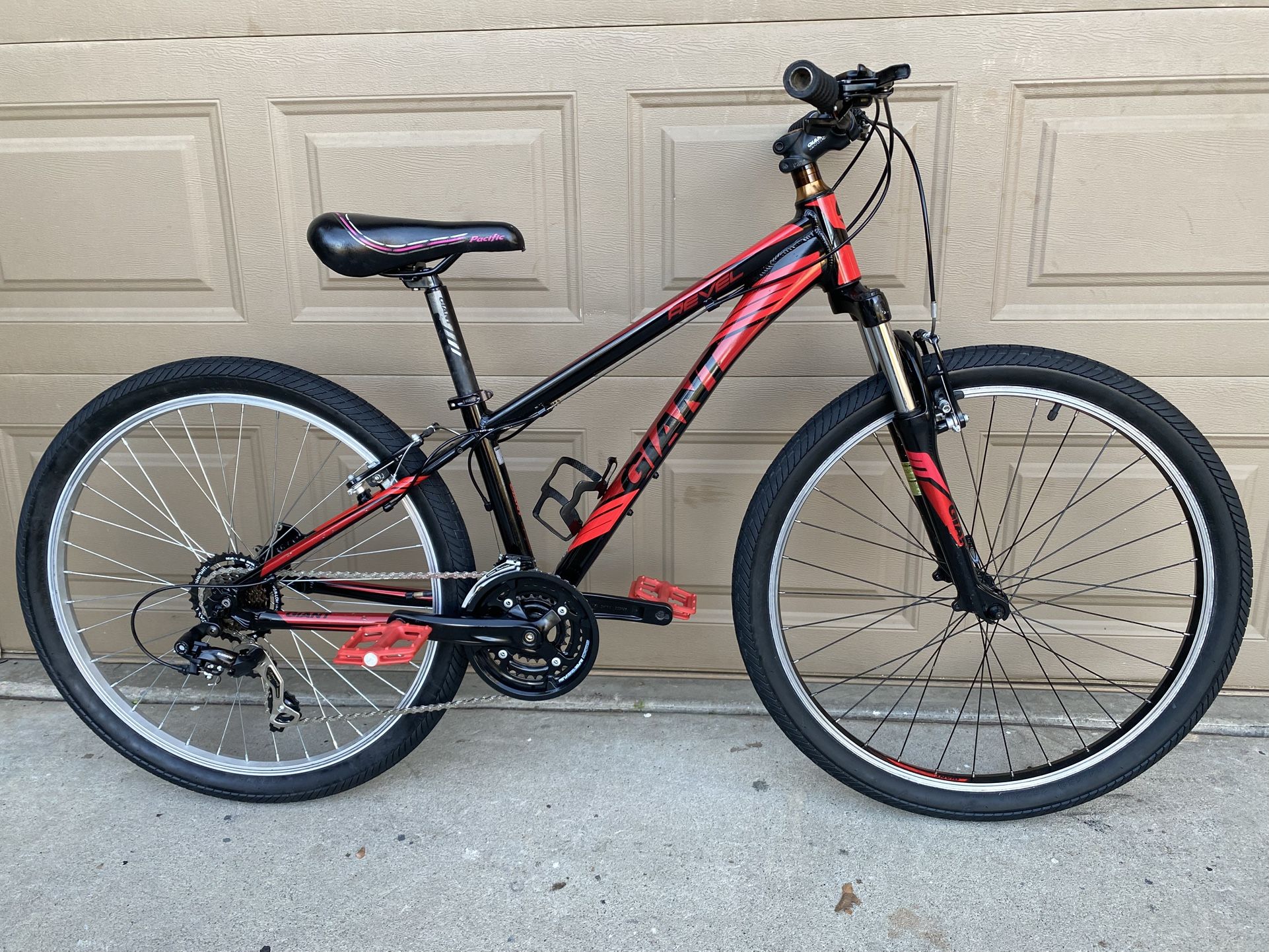 I have a very nice giant Aluminum frame 21 speed Front suspension Shimano gears Size wheels 26 Ready to ride.