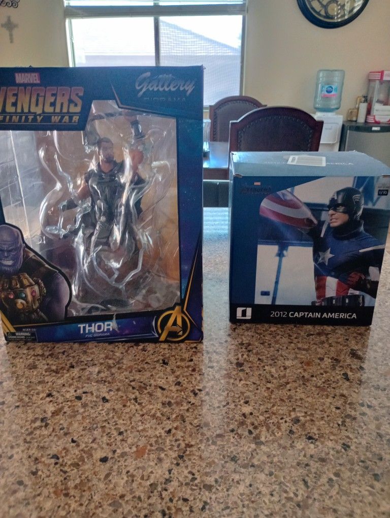 Marvel Infinity War Gallery Thor in box retails for $60-$70 Captain America 2012 Iron Studios scale 1/10 retails for $100-$120 Selling both for $120 or separate