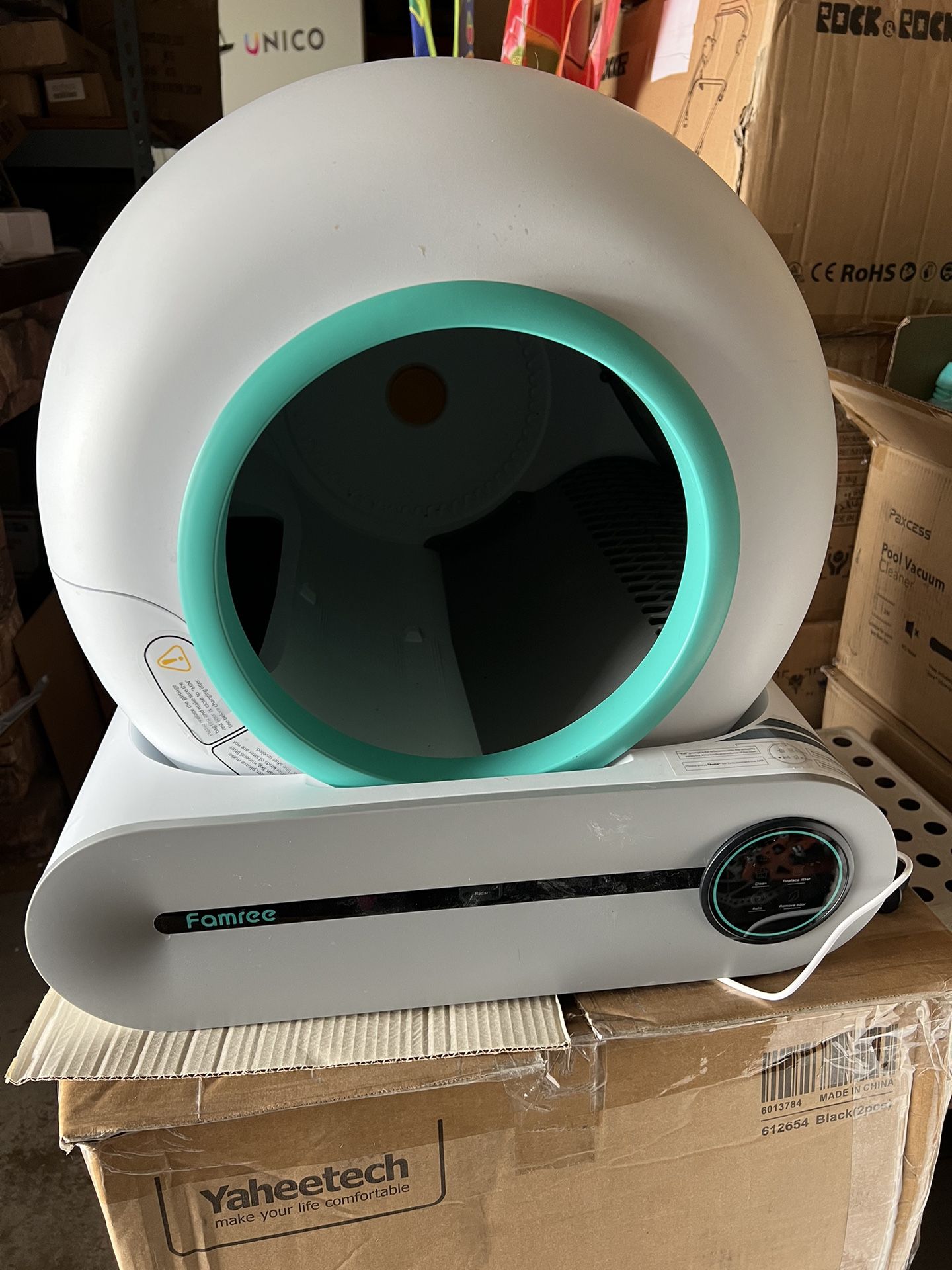 Only cash :$ 280 lowest price ❤️Although it has been used, 80%-90% new .it looks brand new, and everything is in good condition without any problems colors: Blue/ pink original price: $569+tax No return No exchange ✔️first come first served Please message to me when do you want to pickup 🤝 😻A DYNAMIC COLLECTION SYSTEM--Higher space utilization--2.4Gal/9L collection bin and enough capacity to sustain a 13 lb. cat for 15 days of usage. Travel confidently, and don't worry about your cat being home alone 😻REFRIGERATION GRADE ODOR--Elimination. The negative ion deodorizer works with no chemical components. The waste bin's door remains closed after the poop has fallen in, reducing the spread of odors 😻INTELLIGENT HEALTH MONITORING SYSTEM--Equipped with four weight sensors, information about your cat's frequency,time, and weight of cat will be updated through the APP. Infrared sensors tell the device when to stop rotating and when your cat is close 😻BETTER SPACE UTILIZATION--The overall size measures 18.9"*20.5"*19.9", with a volume of 4.5 cubic feet, providing your cat with 17.2Gal /65L of toilet space,which can accommodate a maximum weight of 17.6lb/8kg cat use 😻MANUAL CONTROL & APP CONTROL--Four cleaning modes, including Automatic Sensor Cleaning, Timed Cleaning, One-click Cat Litter Change, and Clean Smell Mode. You can also experience even more control by using Famree's mobile APP
