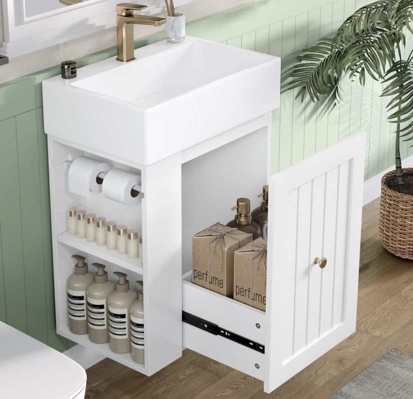 Newly Assembled 20 inch Wall-Mounted Bathroom Vanity with Ceramic Sink and Drawer, Compact Floating Vanity for Small Bathroom, White