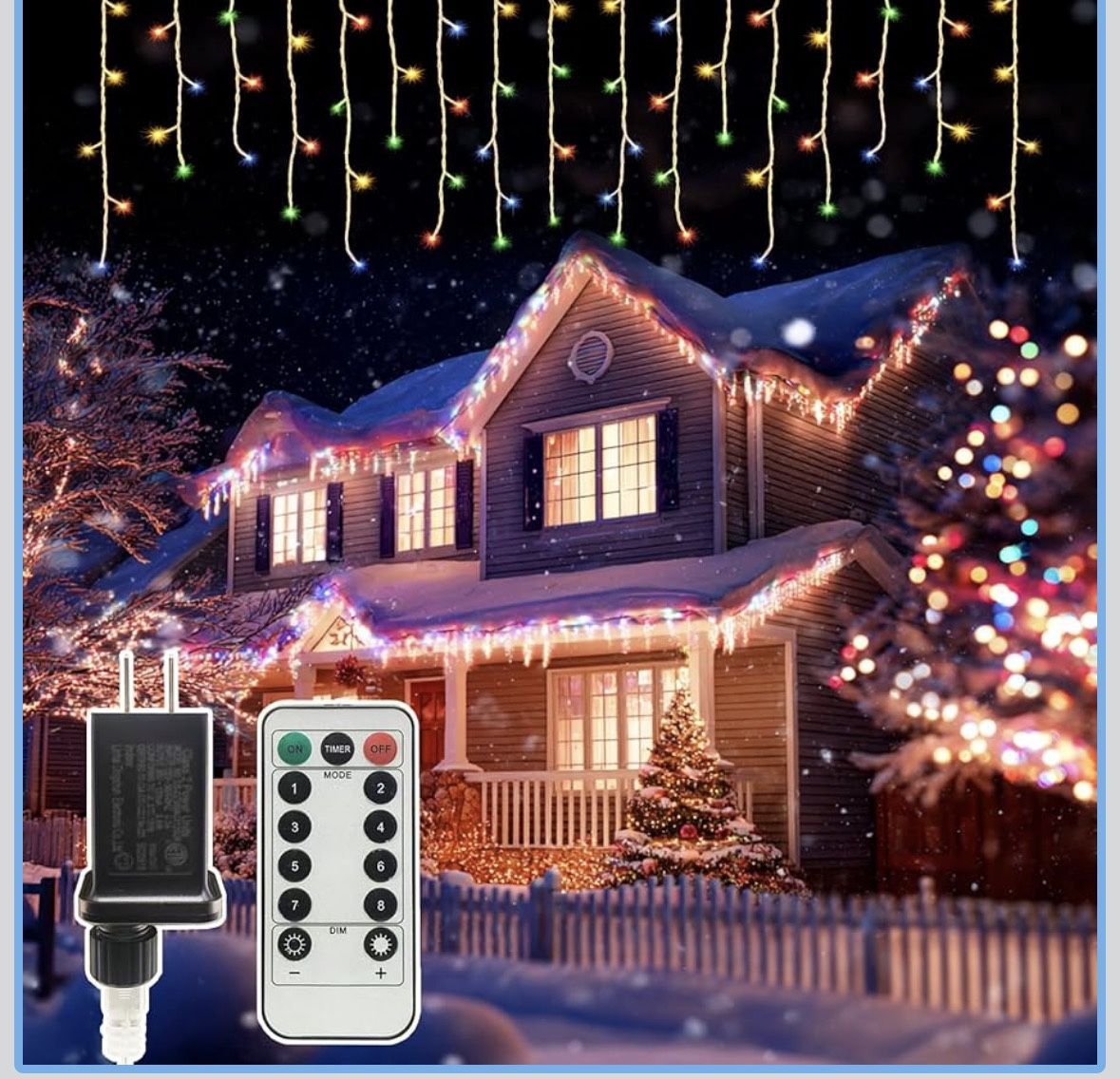 Icicle Christmas Lights Outdoor, 38.8Ft Plug in Icicle String Light with 8 Lighting Modes