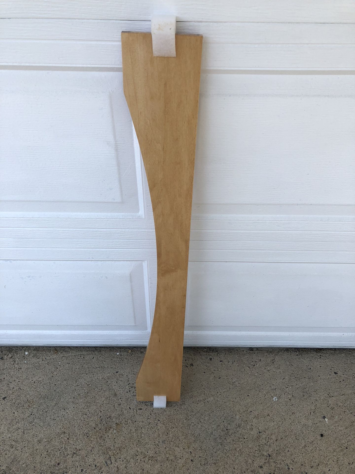 Maple wood curved valance with light stain finish. 42”w x 5 1/2”h at ends. Great wood to be painted.
