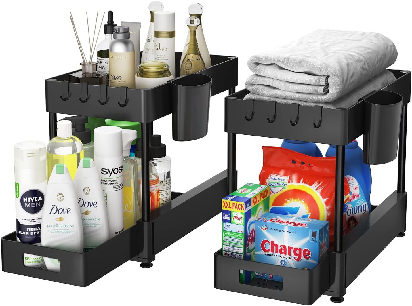 Under Sink Organizers and Storage 2 Pack 2-Tier Multi-purpose Organizers Black