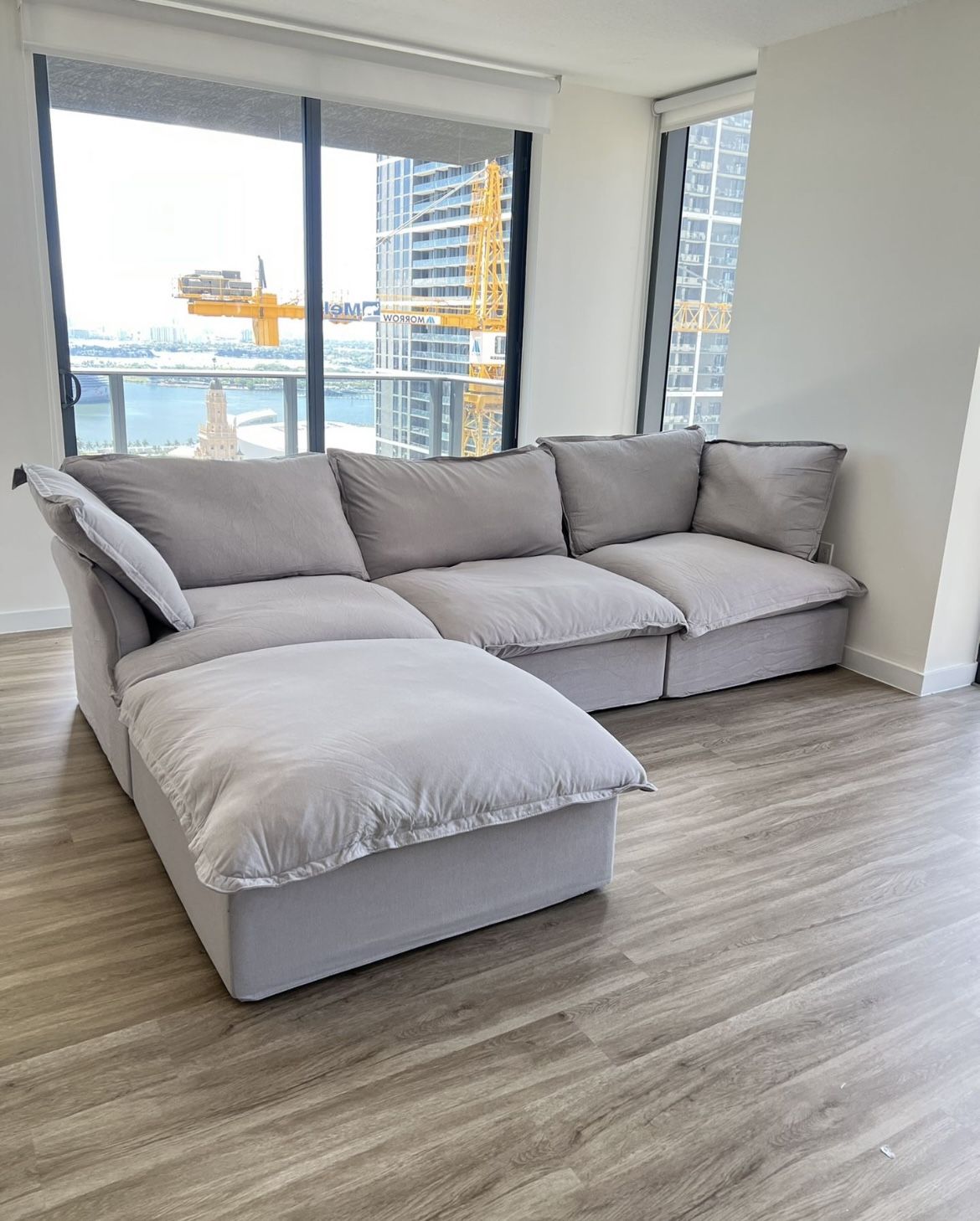 Brand new sets!!! Completely Brand new! Lounge in this beautiful & comfortable cloud sectional today. Colors in light gray, dark gray, white & beige Features: •Modular •Removable covers to wash •Built in storage in ottoman •Base covers can be washed We offer delivery & assembly! Dimensions: 120 inch wide 80 inch chaise