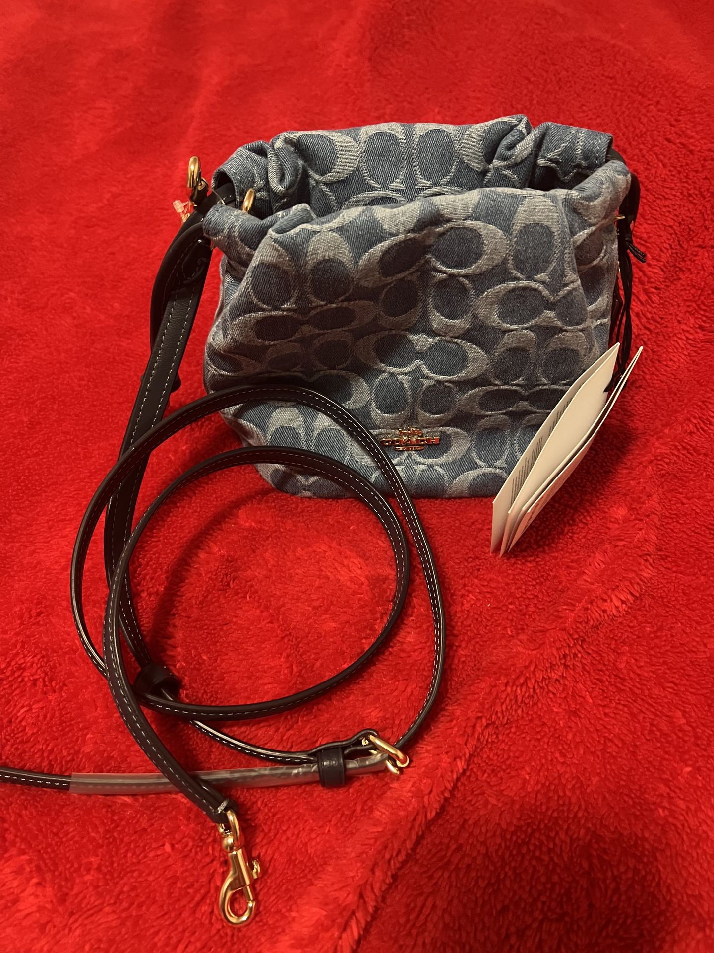 Super adorable mini drawstring bag, NEW; comes with shoulder strap and golden chain; comes with tags and the bag
