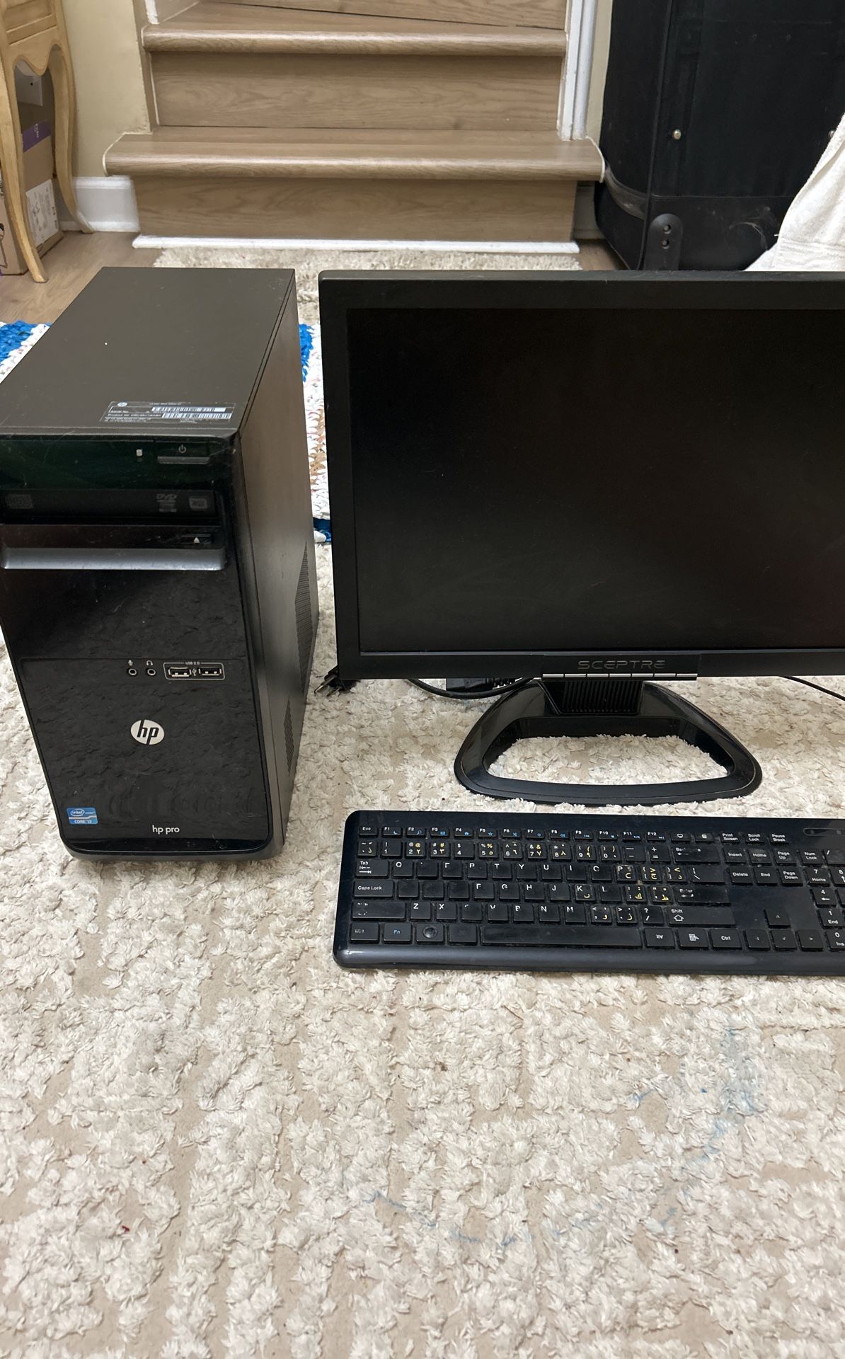 HP Pro 3500 MT Desktop Tower computer, Sceptre X20WG-NAGA 20-inch LCD monitor, wired keyboard haven’t been used in a while works well