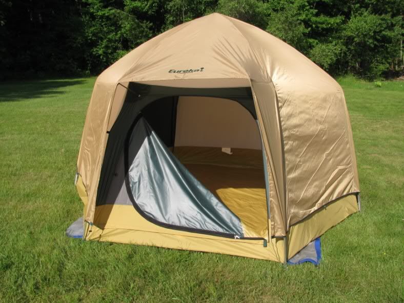 Used a few times but in good condition. Will fit 6 people comfortably. Very roomy 10' X 11'8 and 79 inches center height. Great winter and summer tent. MSRP $419