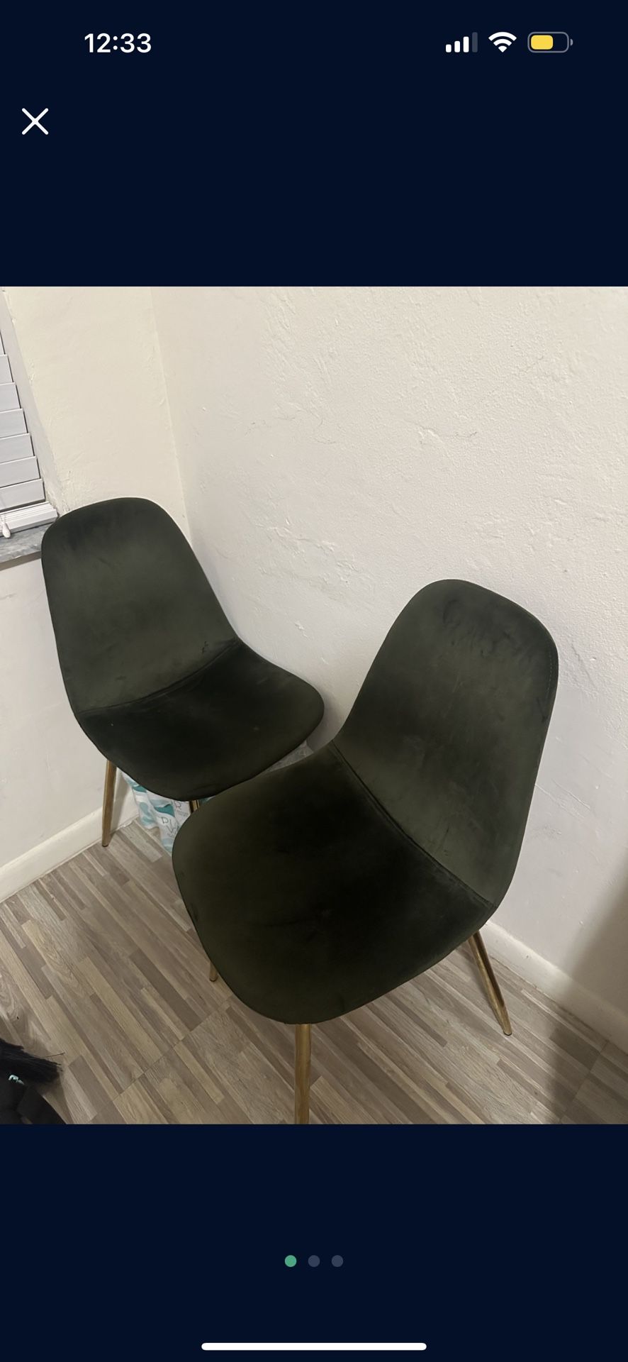 Green velvet chairs, good condition small stain on seat not really visible but could be cleaned. $40 both/ OBO.