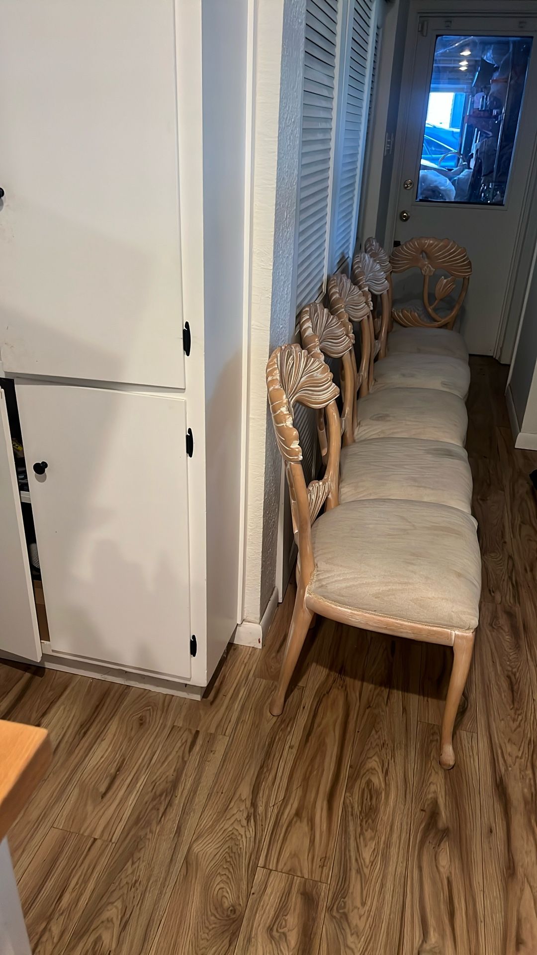 Like new coastal art Novo Lily carved solid wood chairs like new six for 450 for six $75 apiece