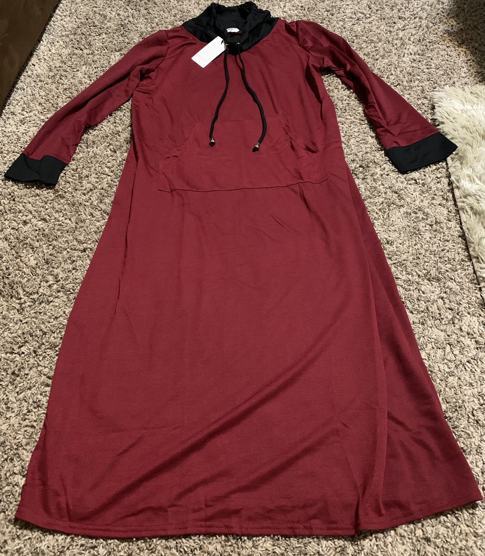 Women’s Hooded Nightgown Long/Short Sleeve Size Large, Wine Red Full Length Loungewear with Pocket