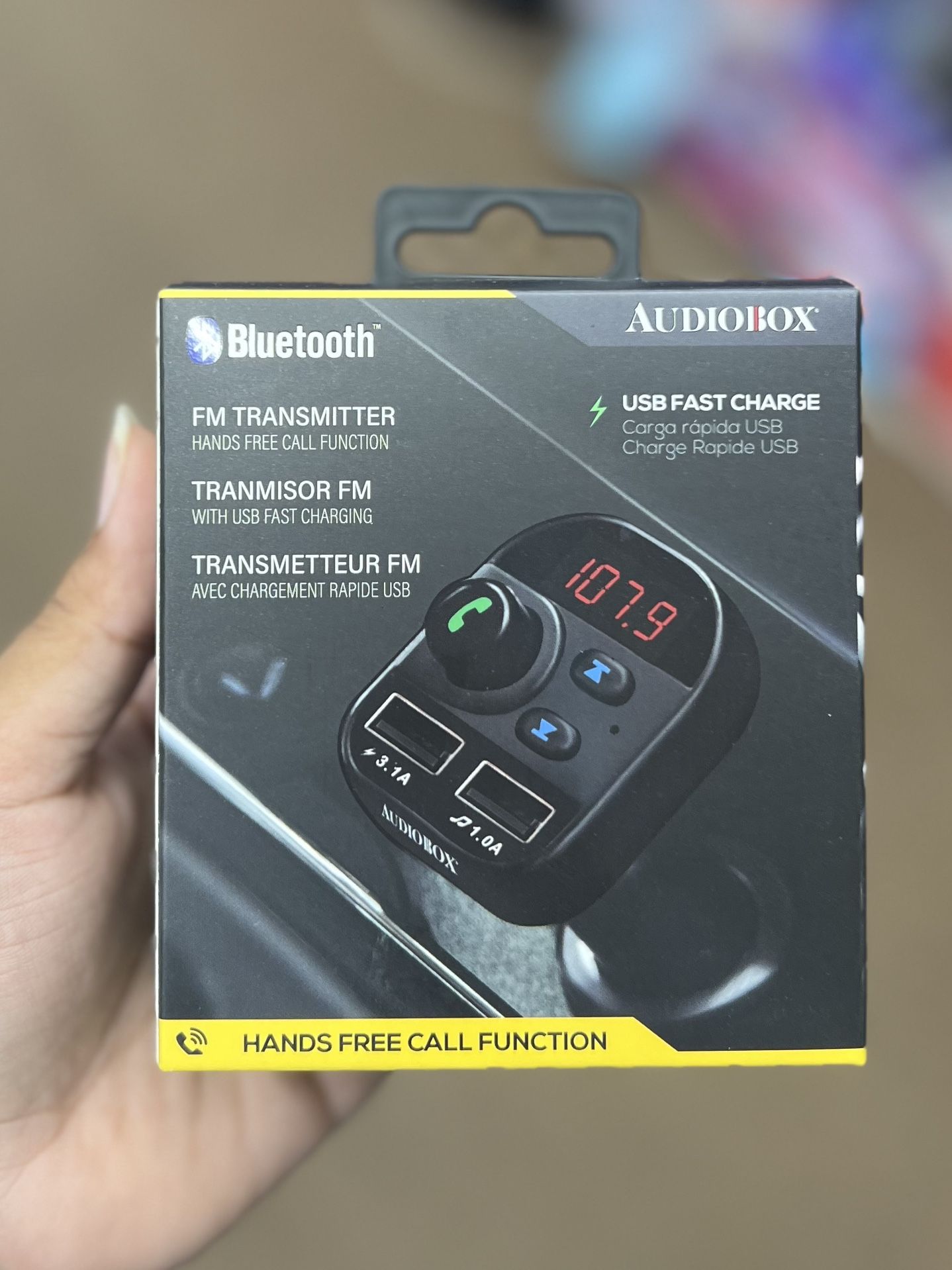 * Stream via Bluetooth and Transmit your phone Calls Music via your Car’s FM Radio * Adjust the Volume, Change the Song via the Transmitters buttons. * Answer and hang up your Cellphone calls from the Transmitters control panel * Play Mp3 files via the Micro SD port * 2 USB charging Ports to charge your USB enabled devices * 3.1A Fast charging capable * USB-C Charging port * LCD Display